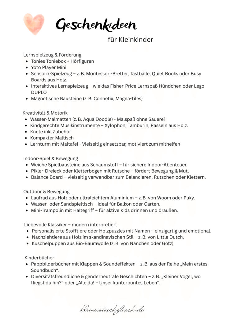 Damit du das perfekte Präsent findest, habe ich hier einige kreative und altersgerechte Geschenkideen für Kinder in verschiedenen Entwicklungsstufen zusammengestellt. Viel Spaß beim Stöbern!