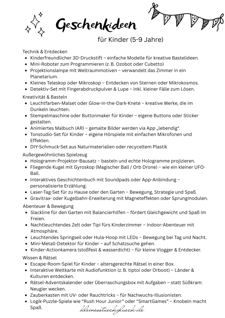 Ich hoffe, diese Tipps helfen dir dabei, das perfekte Geschenk zu finden und einem Kind eine große Freude zu bereiten.